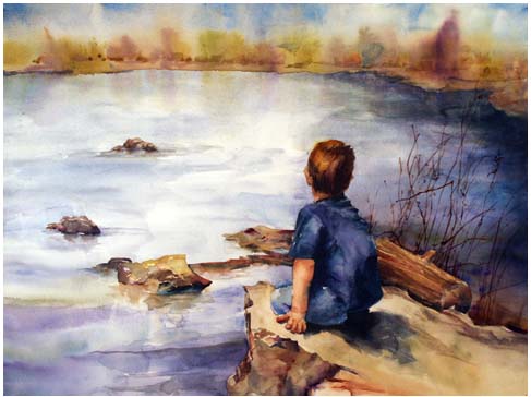 Another feel good story and painting! What a lucky boy to have his mother sing and tell him stories at bedtime. I’m trying to do this for my son adopted son, Jaden, now. He has been in speech therapy for two years and has has made a giant leap into communication this summer. Recently, I watched him run around the house with his sister’s asthma treatment mask on, saying,”I am Darf-Vada…I am you FATHER!”. I had to laugh-his older brother, cam is not going to recognize him when he gets home! He’s now a comical genius ๐ P.S. Do you sell your art work? Fantastic watercolors! I’ll take some picture of my Aunt’s work for ya’ to see-she’s good too. I have a famous LDS artist in my ward-Del Parson!! He did Christ in the red robes ๐ He’s my neighbor!