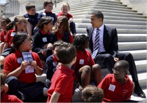 Today these dreams are giving way to another kind of progress. For me, the presidential campaign began in a crowded Iowa hall, where I saw a man my age lift up a daughter around my daughter’s age and tell her that one day she could be president. Last week things came nearly full circle, when I saw another man my age lift up another child and say the very same thing.