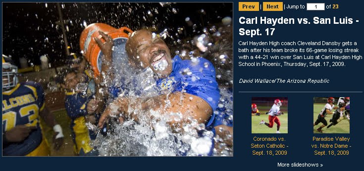 I woke up on Friday morning and got a sign, a sign that this was going to be an amazing day! The reason, the 36 members of the Carl Hayden football team woke up as winners today according to the headlines in the paper. But in my book, the players on this team have been winners every time they took the field.