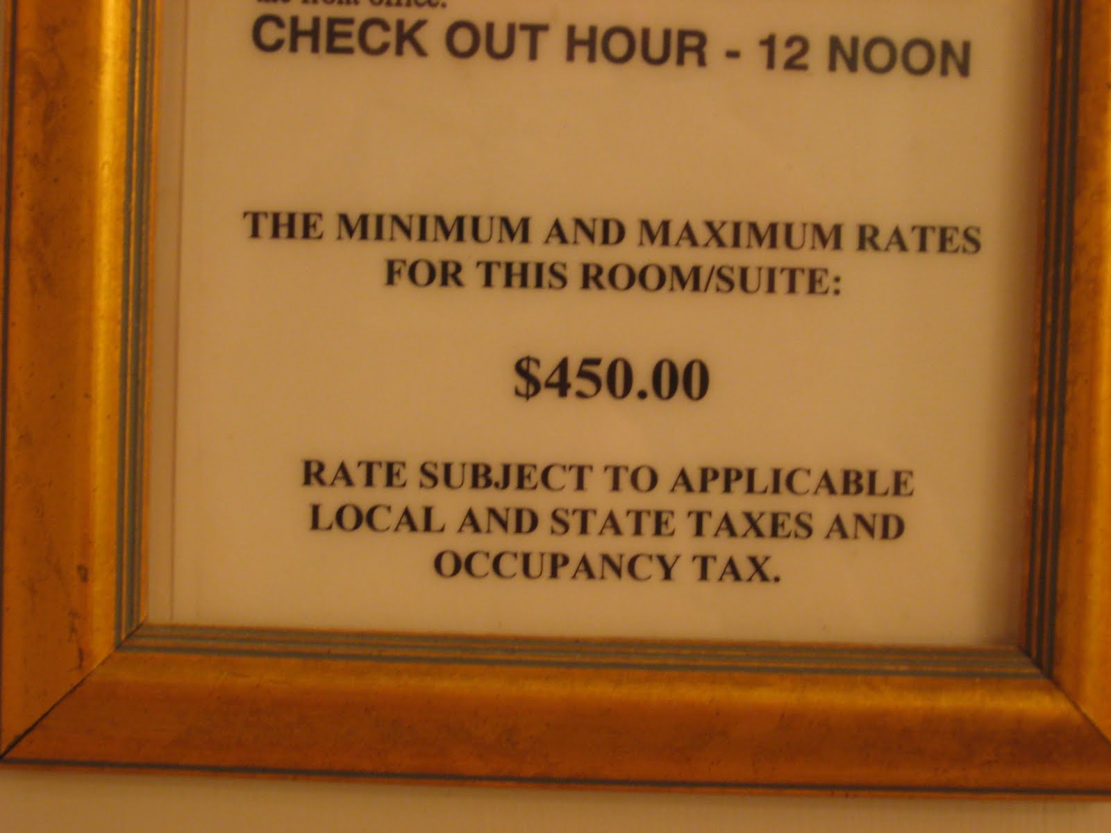 Yipes!Also, Ms. Snotty Desk Clerk,You never know when someday $450/night might seem like pocket change to me, and what will I remember about your now affordable hotel? Hmmm?Look before you leap, honey