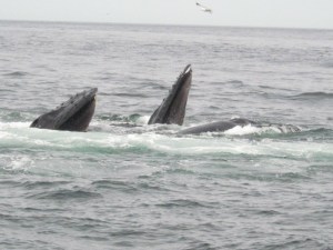 I had seen humpback whales in Hawaii where they mate. In New England, in the spring, humpbacks are summering, eating, feeding, and the behavior is different. They agitate the water, frightening the fish so they gather in a nice snack-like clump. The whales then dive down, turn around and drive up to the surface with mouths open.