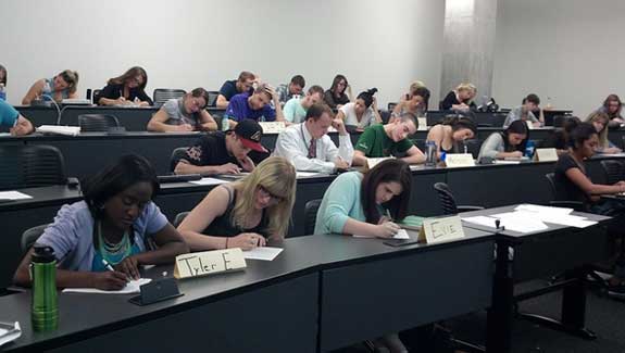 | Our class from the Spring 2013 semester. They look extra-serious because they are taking a quiz. |